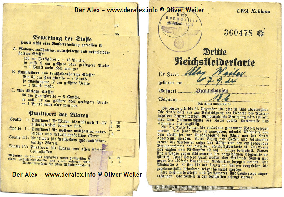 Unten: Die "Gelben Zettel" von denen Der Alex schreibt. Es waren Bezugskarten für Kleider.