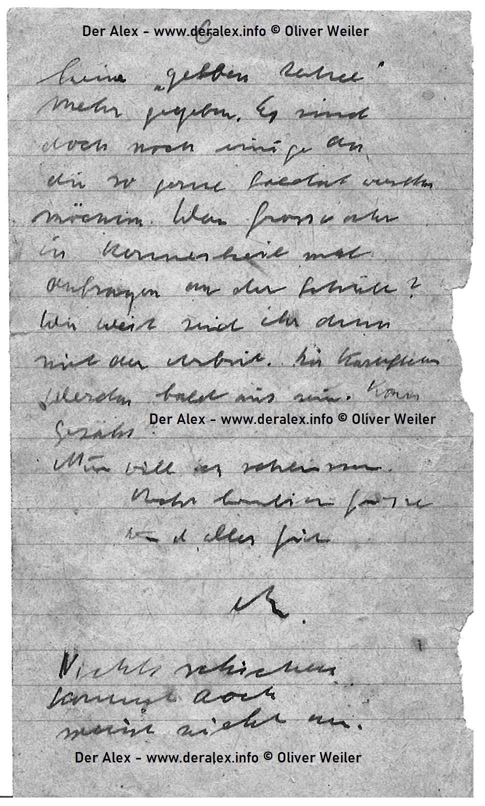 Alex schreibt einen Brief an seinen Bruder Martin, der zu dieser Zeit auf der Kriegsschule in Metz ist und dort einen Fahnenjunker Lehrgang der Artillerietruppe besucht.